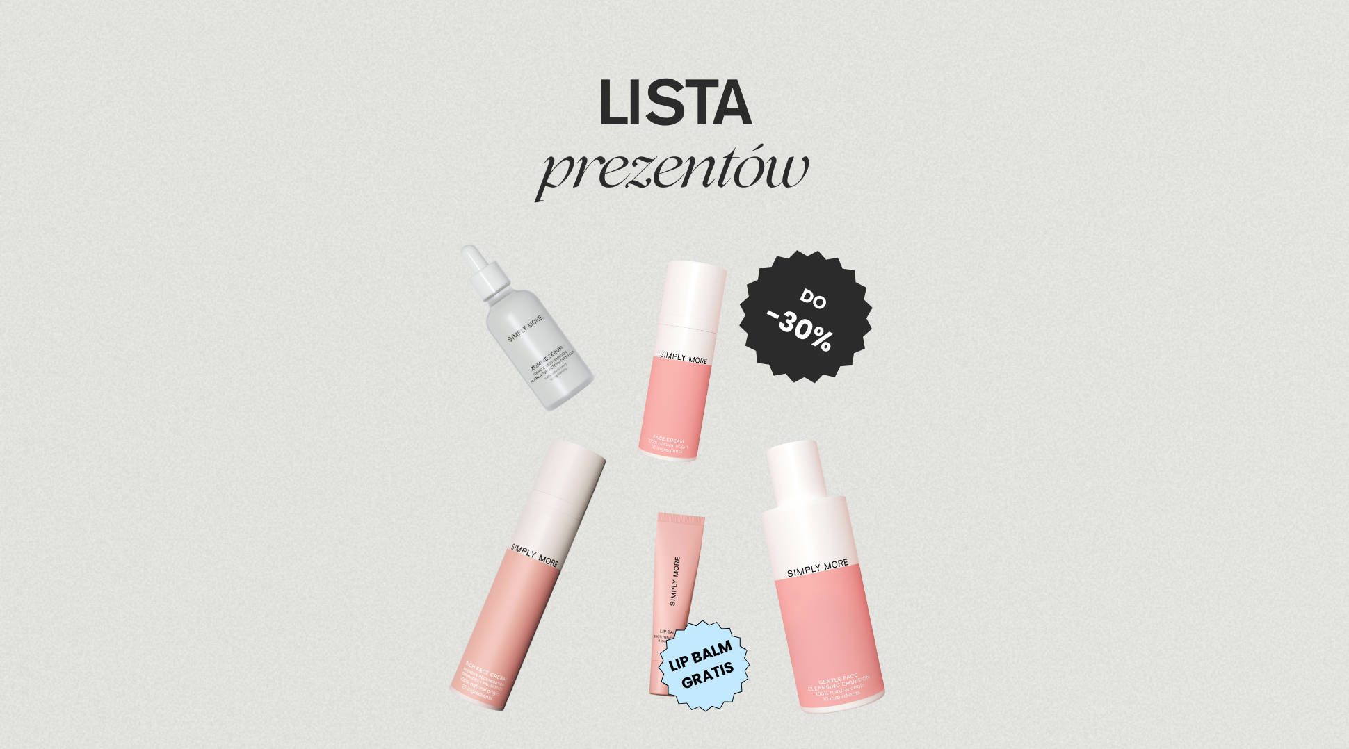 Simply More to minimalistyczne kosmetyki tworzone w Polsce. Wierzymy, że proste, doskonale zbalansowane formuły i najwyższej jakości skladniki to przepis na zdrową skórę. Dlatego tworzymy formuły bez agresywnych substancji aktywnych, które minimalizują zaburzanie naturalnego balansu skóry, za to maksmylanie go wspierając.